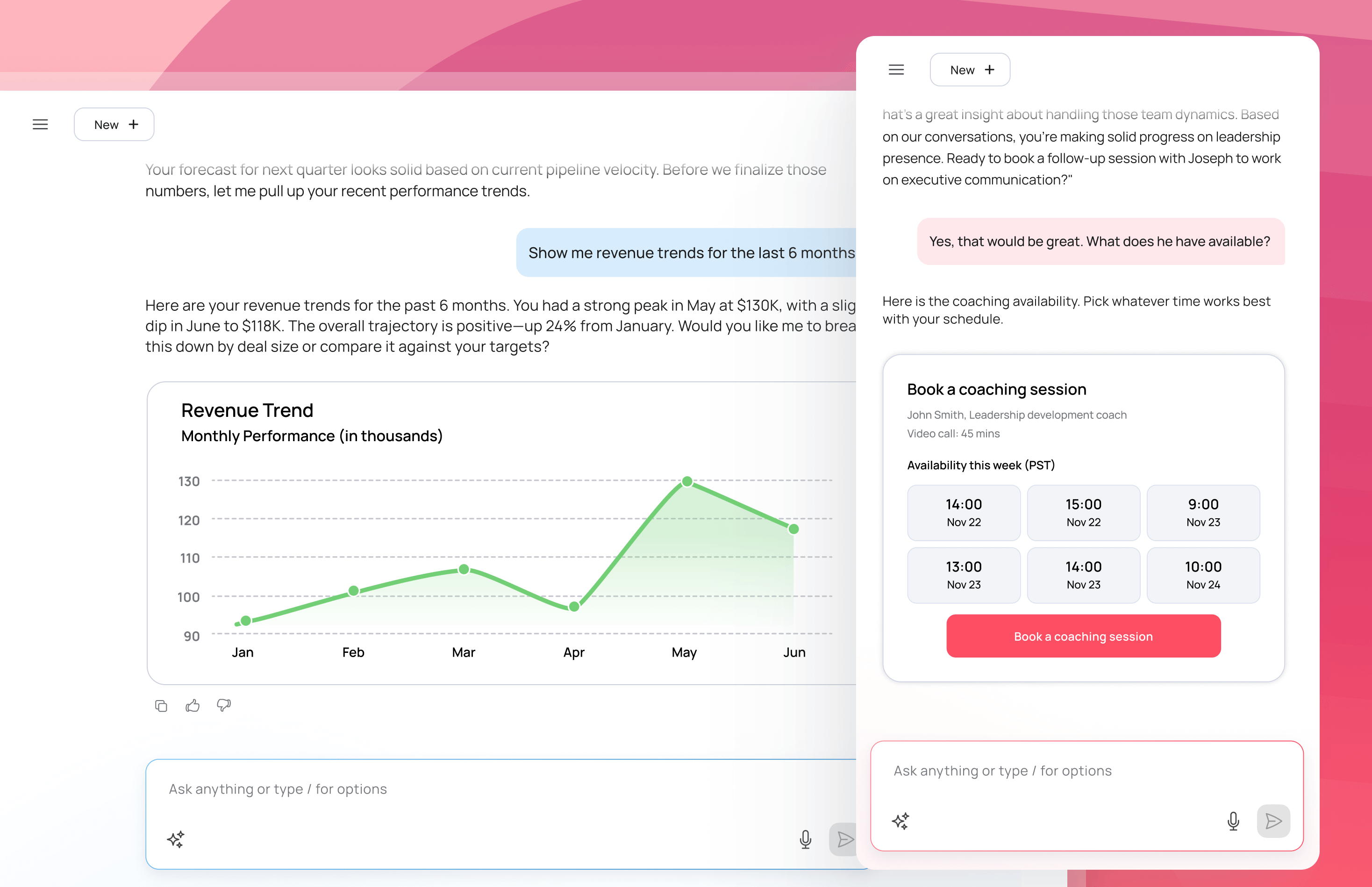 Think about booking flights through text descriptions of options. It's painful compared to seeing actual flight cards with prices, times, and availability. Analyzing data through text descriptions doesn't compare to actual charts you can filter and explore. Claude launched the same capability recently, where services define interface components that render inside conversations. Ask about meeting times, get an interactive calendar widget. Ask about sales trends, get a chart you can manipulate.