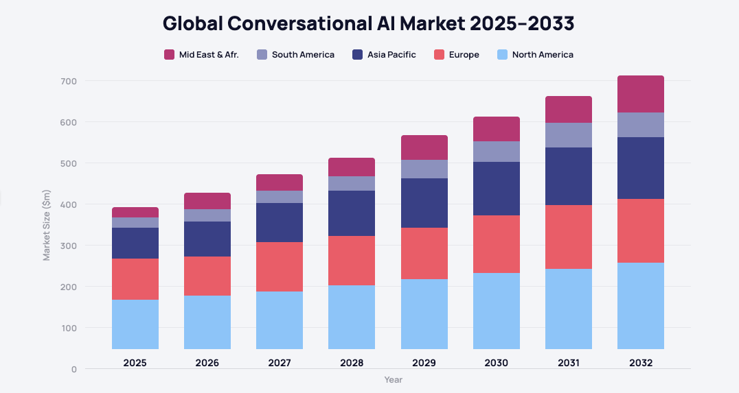 The conversational interface layer is fundamentally commodity infrastructure. Every company needs text, voice, and rich media handling. These capabilities don't differentiate your product; they're table stakes for participating in the conversational AI market— and that market is growing fast.